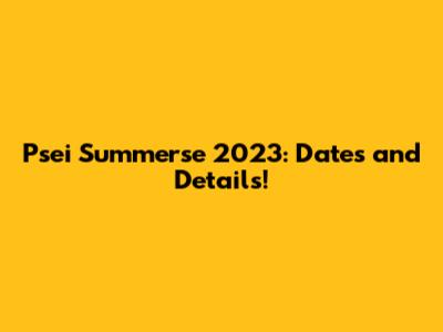 Psei Summerse 2023: Dates And Details!