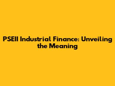 PSEII Industrial Finance: Unveiling The Meaning