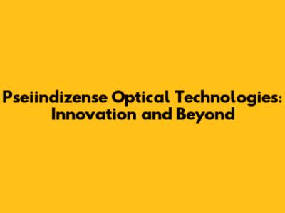 Pseiindizense Optical Technologies: Innovation And Beyond