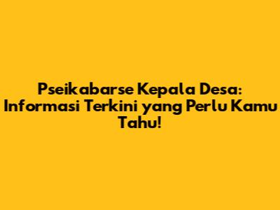 Pseikabarse Kepala Desa: Info Terbaru Dan Terkini!