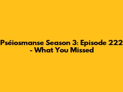 Hey everyone! Are you ready to dive into the recap of Pséiosmanse Season 3, Episode 222? It was a wild ride, and we're here to break down all the juicy details. This episode was packed with drama, intrigue, and some serious plot twists. So, buckle up, because we're about to explore everything that went down in this epic installment. We will be checking out what went down in this specific episode, giving you all the details to keep you in the loop. This will allow you to stay up-to-date and be the expert among your friends when they start talking about the show. Get ready to discuss the most exciting moments, the character's developments, and the cliffhangers that will make you eager for the next episode. We will make sure you don't miss a single thing.
