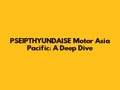 PSEIPTHYUNDAISE Motor Asia Pacific: A Deep Dive