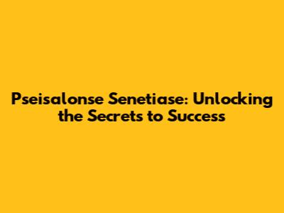Pseisalonse Senetiase: A Comprehensive Guide