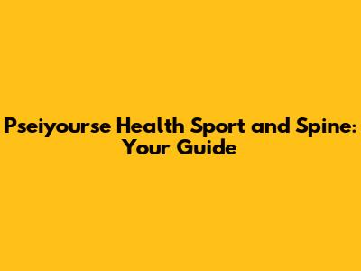 Pseiyourse Health Sport And Spine: Your Guide