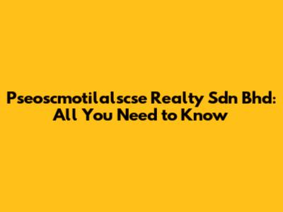 Pseoscmotilalscse Realty Sdn Bhd: All You Need To Know