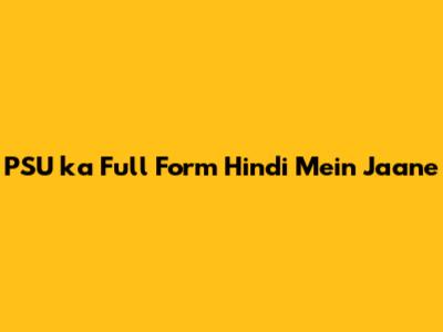PSU Ka Full Form Hindi Mein Jaane