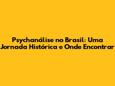 Psychanálise No Brasil: História E Onde Assistir