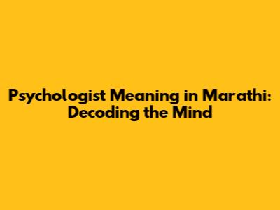 Psychologist Meaning In Marathi: Decoding The Mind