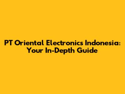 PT Oriental Electronics Indonesia: Your In-Depth Guide