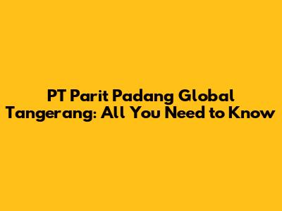 PT Parit Padang Global Tangerang: All You Need To Know