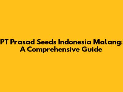 PT Prasad Seeds In Malang, Indonesia: A Comprehensive Guide