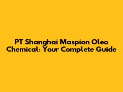 PT Shanghai Maspion Oleo Chemical: Your Complete Guide