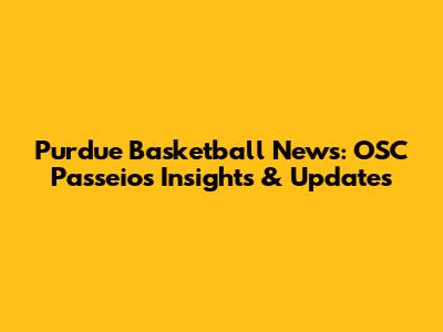 Purdue Basketball News: OSC Passeios Insights & Updates