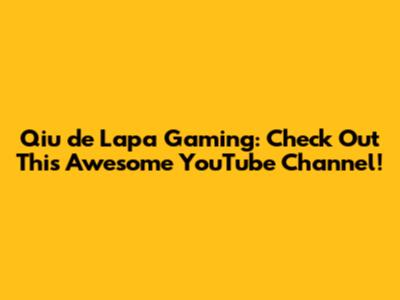 Qiu De Lapa Gaming: Check Out This YouTube Channel!