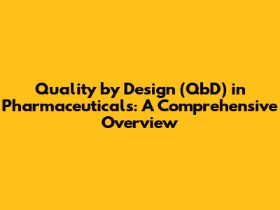 Quality By Design (QbD) In Pharma: A Comprehensive Overview