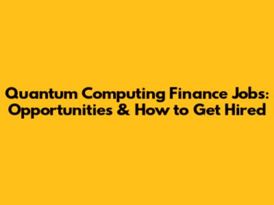 Quantum Computing Finance Jobs: Opportunities & How To Get Hired