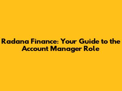 Radana Finance: Your Guide To The Account Manager Role