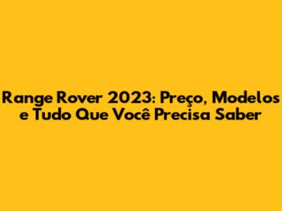 O Range Rover 2023 oferece uma variedade de modelos e versões para atender a diferentes necessidades e preferências. Cada modelo tem suas próprias características, configurações e preços. Vamos dar uma olhada em alguns dos principais modelos: