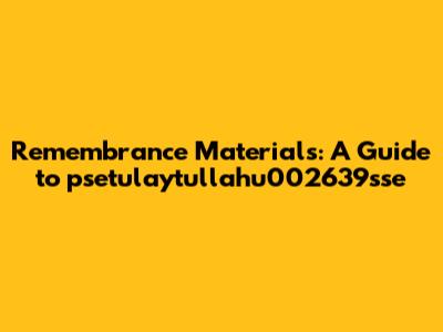 Remembrance Materials: A Guide To Psetulaytullahu002639sse