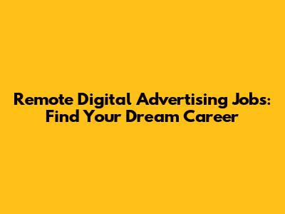 Remote Digital Advertising Jobs: Find Your Dream Career