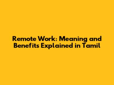 Remote Work: Meaning And Benefits Explained In Tamil