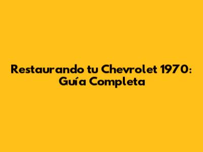 Restaurando Tu Chevrolet 1970: Guía Completa