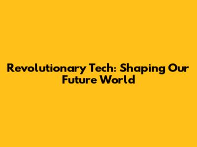 Revolutionary Tech: Shaping Our Future World
