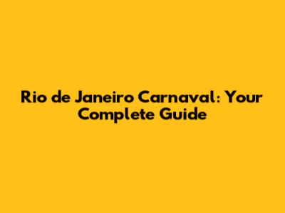 Rio De Janeiro Carnaval: Your Complete Guide