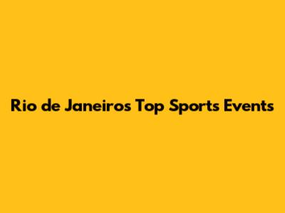 Rio De Janeiro's Top Sports Events