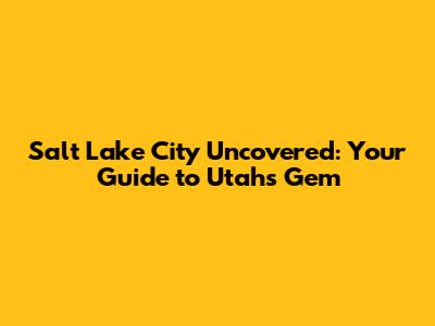 Salt Lake City Uncovered: Your Guide To Utah's Gem