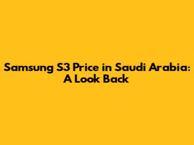 The Evolving Samsung S3 Price in Saudi Arabia Over Time