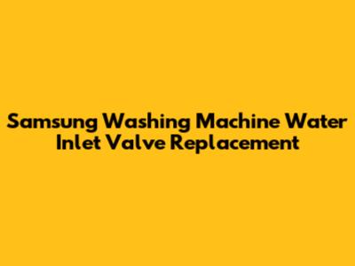 Samsung Washing Machine Water Inlet Valve Replacement