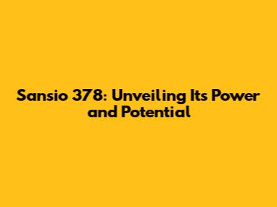 Sansio 378: Unveiling Its Power And Potential