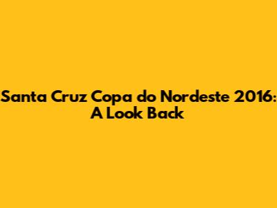 Santa Cruz Copa Do Nordeste 2016: A Look Back