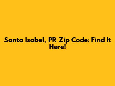 Santa Isabel, PR Zip Code: Find It Here!