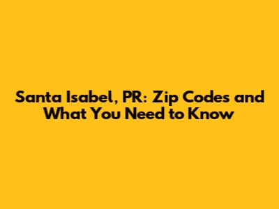 Hey there, fellow explorers! Ready to dive into the world of Santa Isabel, Puerto Rico, and its nifty zip codes? Whether you're planning a move, sending a package, or just curious about this charming town, you're in the right place. We're going to break down everything you need to know about the zip codes in Santa Isabel, making it super easy to understand. So, grab your virtual map and let's get started on this exciting journey! We'll explore the main zip codes, understand their significance, and even touch upon some cool facts about Santa Isabel. Get ready for a fun and informative ride, guys!