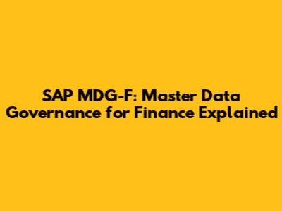 SAP MDG-F: Master Data Governance For Finance Explained