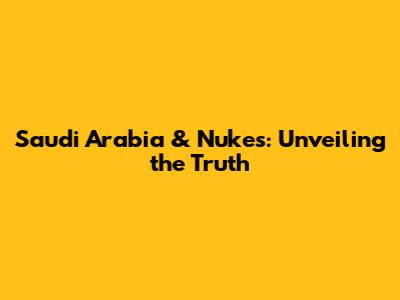 Saudi Arabia & Nukes: The Real Deal