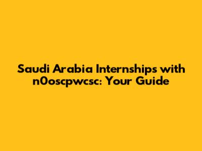 Saudi Arabia Internships With N0oscpwcsc: Your Guide