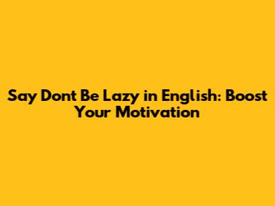 Say 'Don't Be Lazy' In English: Boost Your Motivation