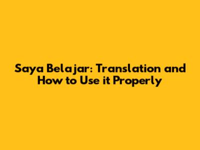 Saya Belajar: Translation And How To Use It Properly