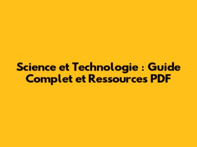 Science Et Technologie : Guide Complet Et Ressources PDF