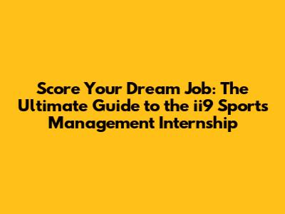 Score Your Dream Job: The Ultimate Guide To The Ii9 Sports Management Internship