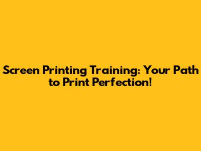 Screen Printing Training: Your Path To Print Perfection!