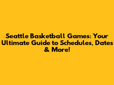 Seattle Basketball Games: Schedules, Dates & More!