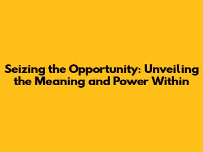 The Significance of Seizing Opportunities: Why It Matters