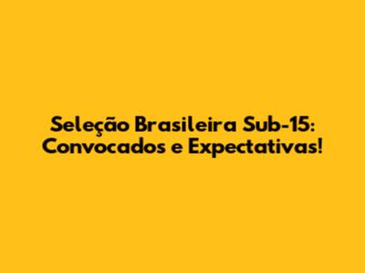 Seleção Brasileira Sub-15: Convocados E Expectativas!