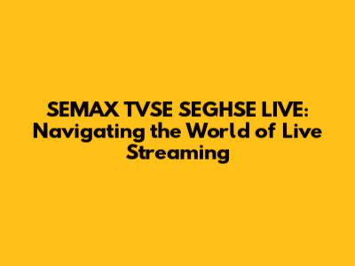 SEMAX TVSE SEGHSE LIVE: Navigating the World of Live Streaming