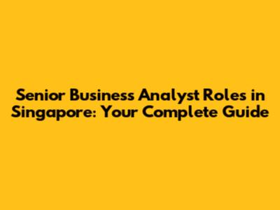Senior Business Analyst Roles In Singapore: Your Complete Guide