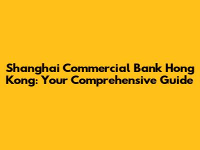 Shanghai Commercial Bank Hong Kong: Your Guide